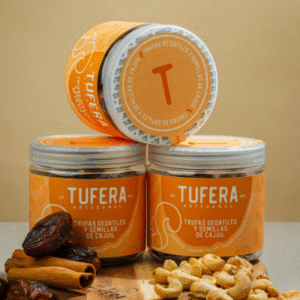 ENERGIA EXTRA PARA TU CUERPO TRUFA DE DATILES Y SEMILLAS DE CAJUIL Nuestras completamente deliciosas trufas(bolas energéticas), están elaboradas con ingredientes 100% naturales. Ingredientes:Dátiles deshidratados, semillas de cajuil tostadas, canela, vainilla y sal rosada del Himalaya. Cada envase cuenta con 20 trufas y tienen un peso de 8.75 oz Guia de consumo Puedes disfrutarlas como merienda, después o antes de un entrenamiento, con el café y hasta con una bandeja de embutidos. Sin Gluten Sin Colorantes Sin Conservantes Sin Azúcar Anadido Nuestros Productos Dátiles y Pistachos Dátiles y Semillas de Cajuil Dátiles y Chocolates Dátiles y Almendras Higos y Almendras